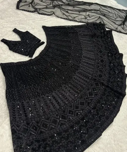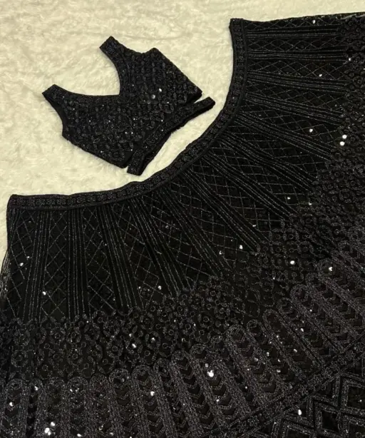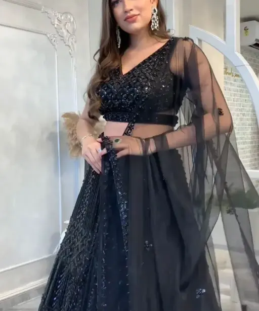 Dark Black Bollywood Style Heavy Net Embroidery With Sequence Work Bollywood Style Lehenga