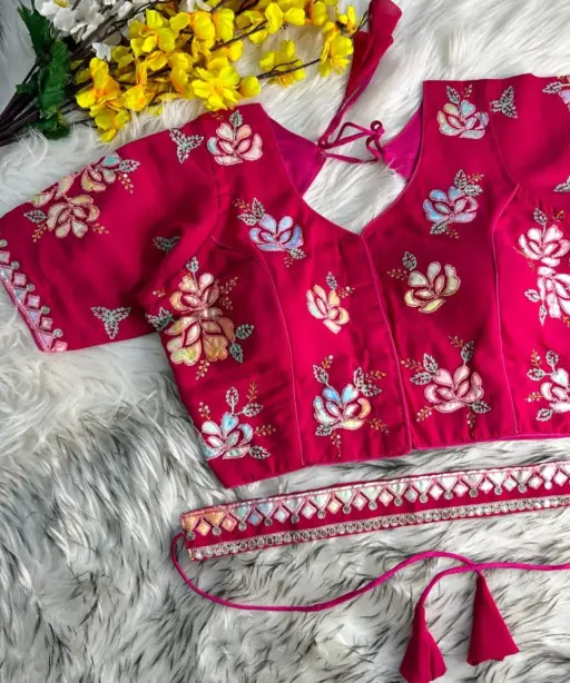 | Blouse | Heavy Soft Fox Georgette With Cotton inner 12 inch Sleeves Length With Heavy Pad And Belt |
