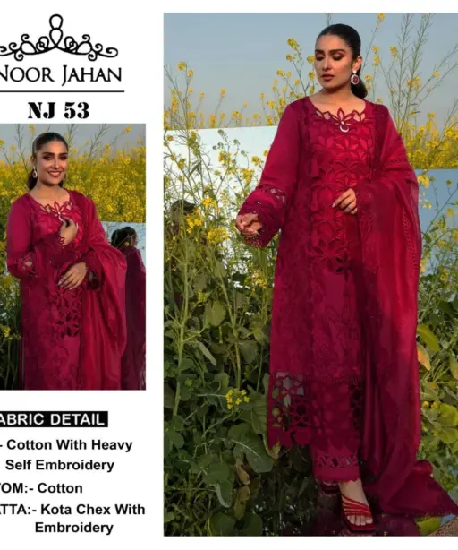 Premium Quality Fabric: The Noor Jahan NJ-53 salwar suit is crafted from high-quality fabric that provides comfort and durability, perfect for long hours of celebration and festivities.