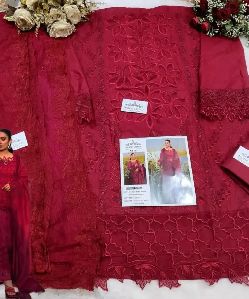 Buy Noor Jahan NJ-53 Red Pakistani Style Fashion Ramzan Eid Wear Suit