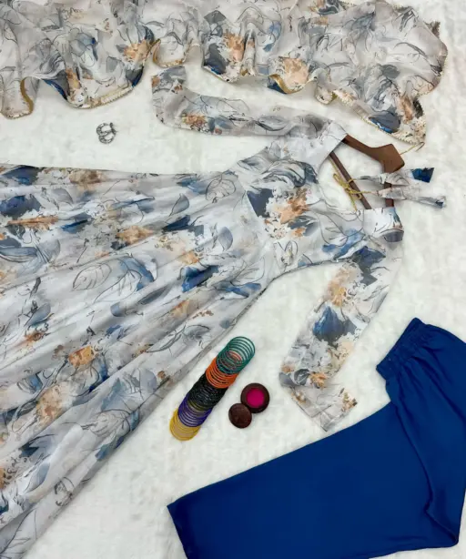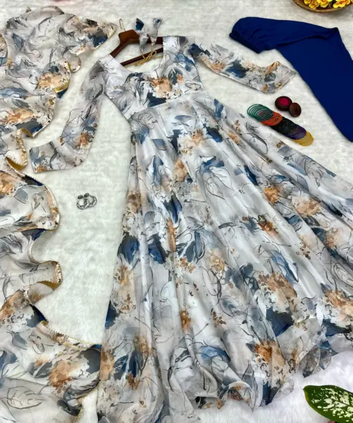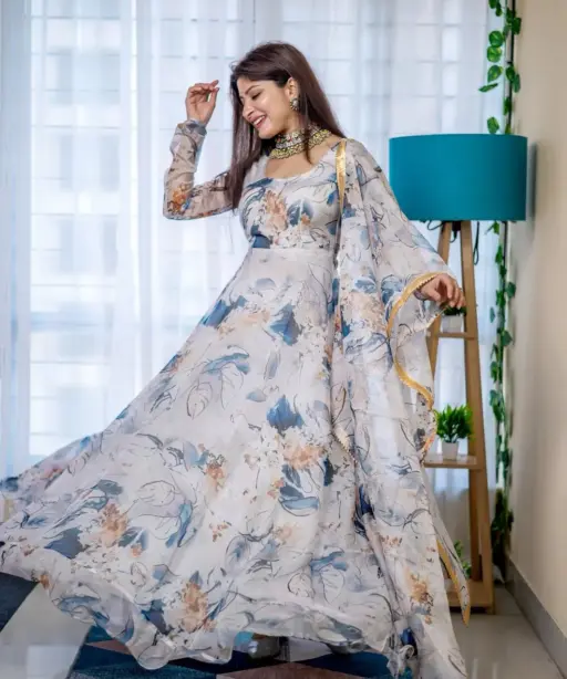 | Gown | Organza Taby Silk with Digital Print, Full Sleeve |