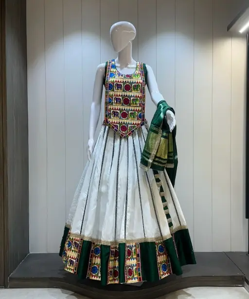 Khadi Cotton Chaniya Choli With Long Gamthi Blouse For Navratri