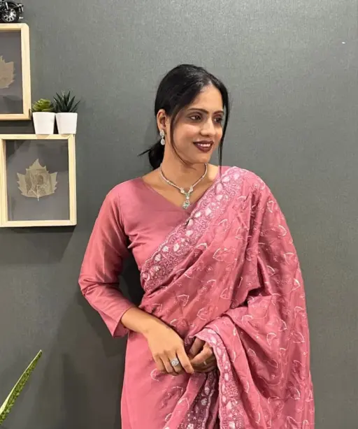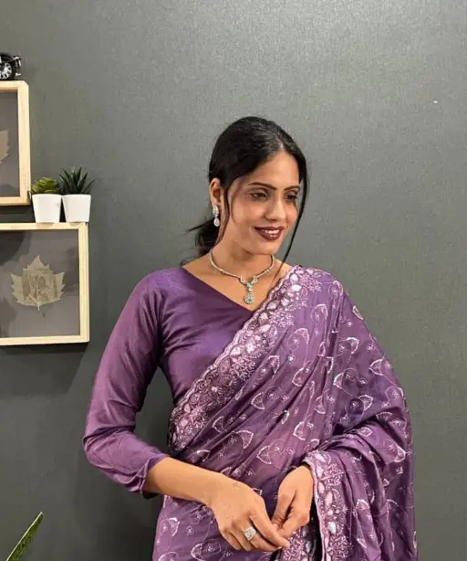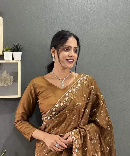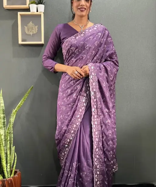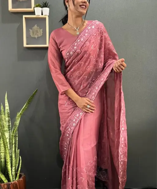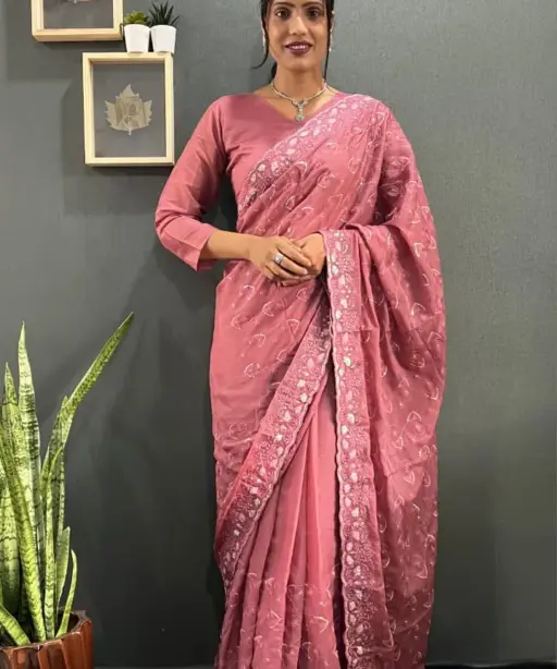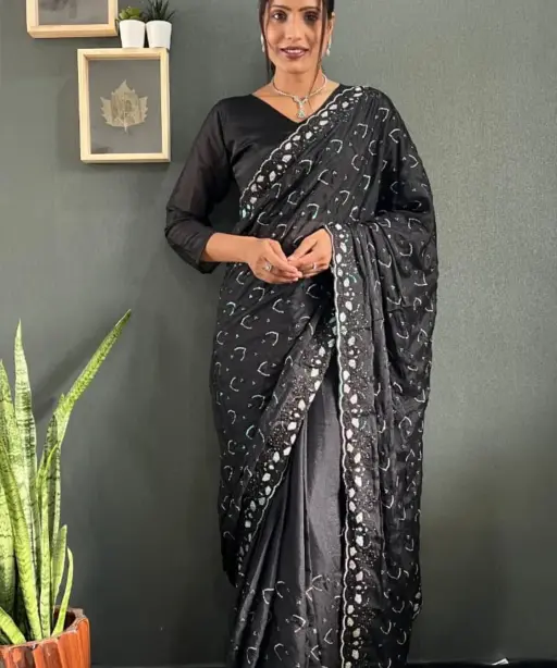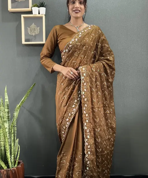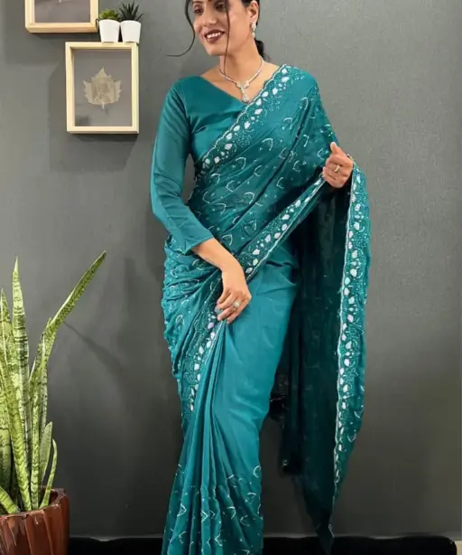 | Saree | Premium Sparkling Georgette Silk Saree with Embroidery Multi Sequence & Cut Work Border (Free Size Up To 44) |