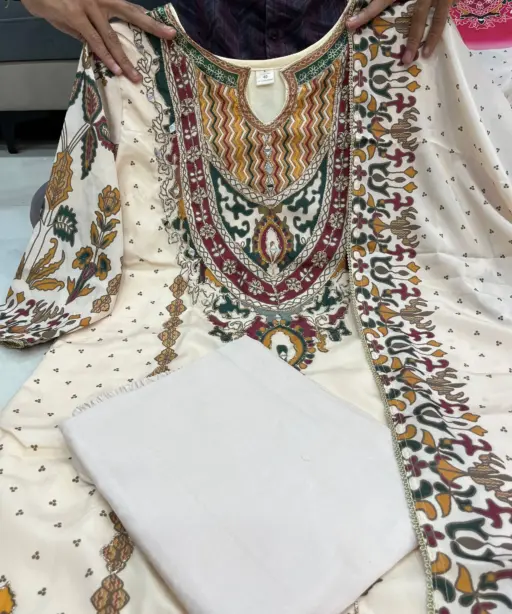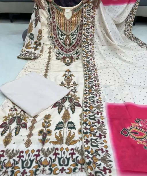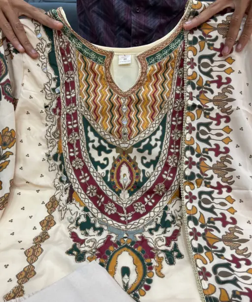 | Top | Pure Russian Silk with Intricate Aari & Hand Work; Full Cotton Lining |