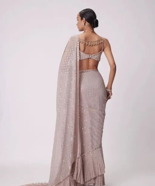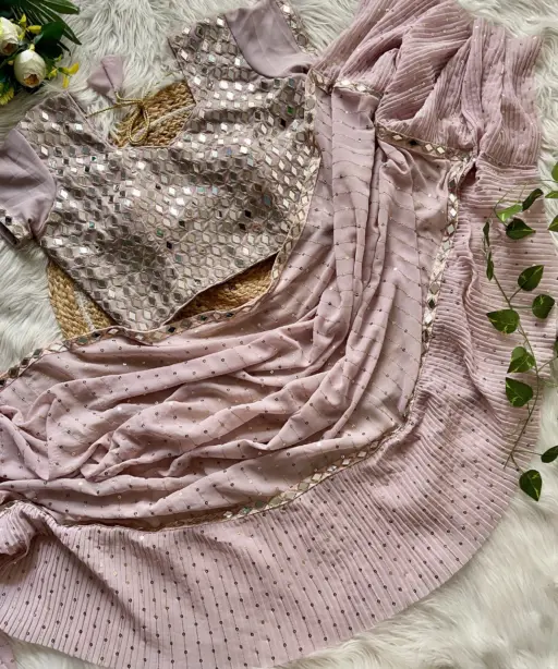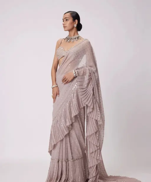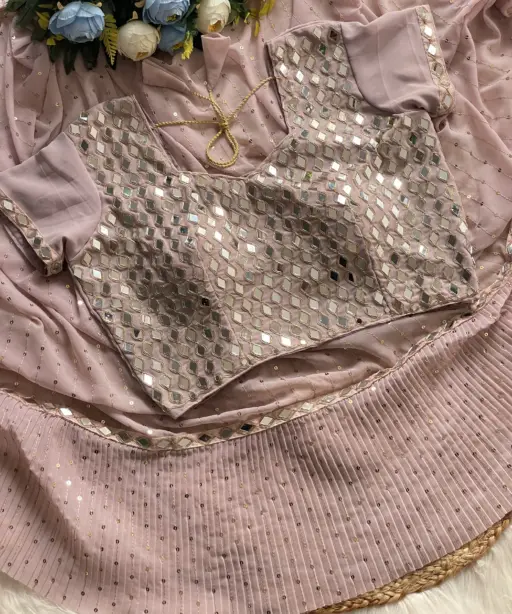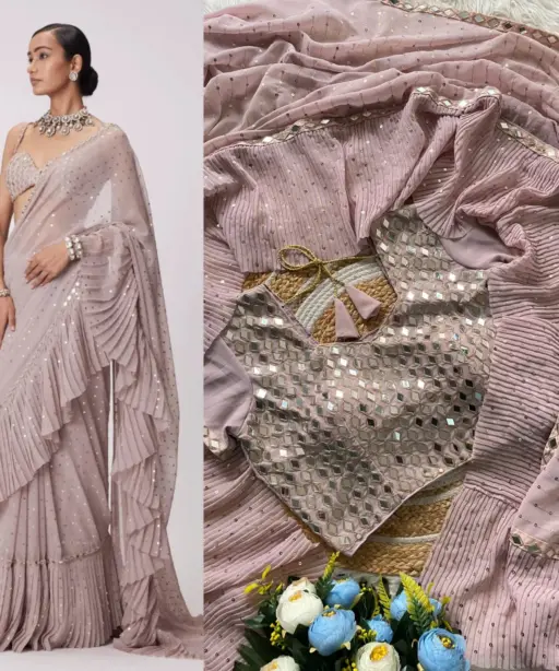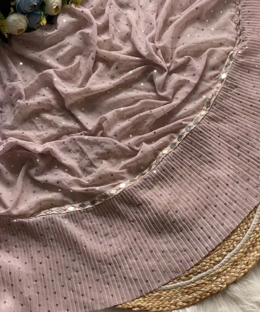 | Saree | Faux Georgette with Heavy 5mm Sequins Embroidery Work; Crush Pleated with 5mm Sequins Work |
