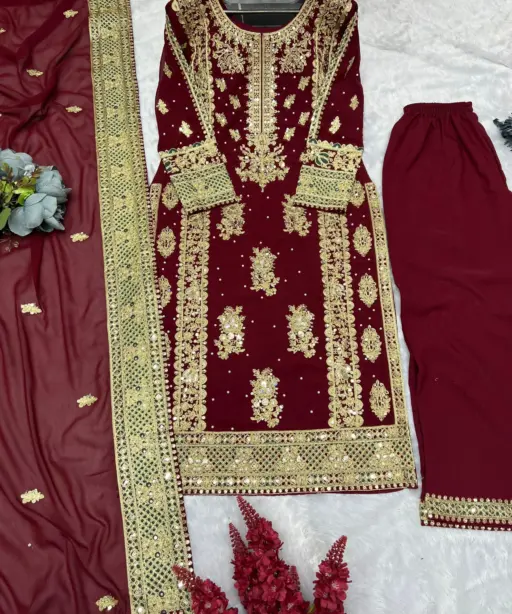 | Dupatta | Faux Georgette with Heavy Embroidery and Sequins Work Length 2.10 Meters |