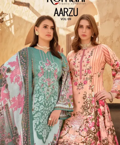 AARZU VOL-9 by Romani Soft Cotton Dress Materials With Embroidery