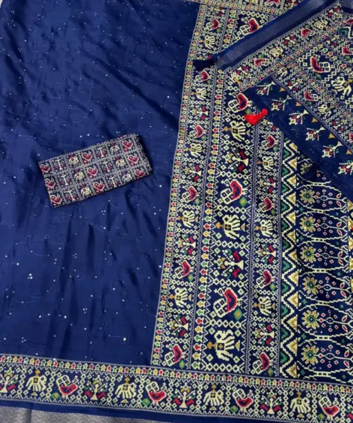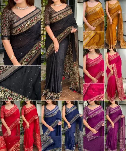 | Saree | Pure Mul Cotton with Thread Work Sequins in Zaal Pattern, Ajrakh Print with Zari Jacquard Border, Tassels on Pallu (6.30 Mtr) |