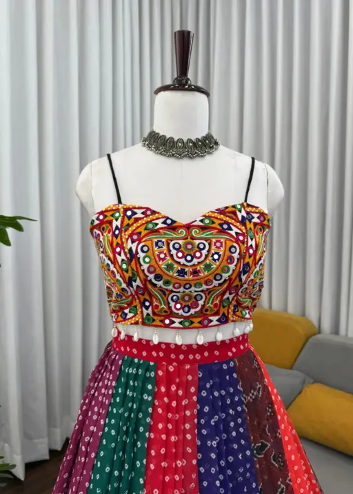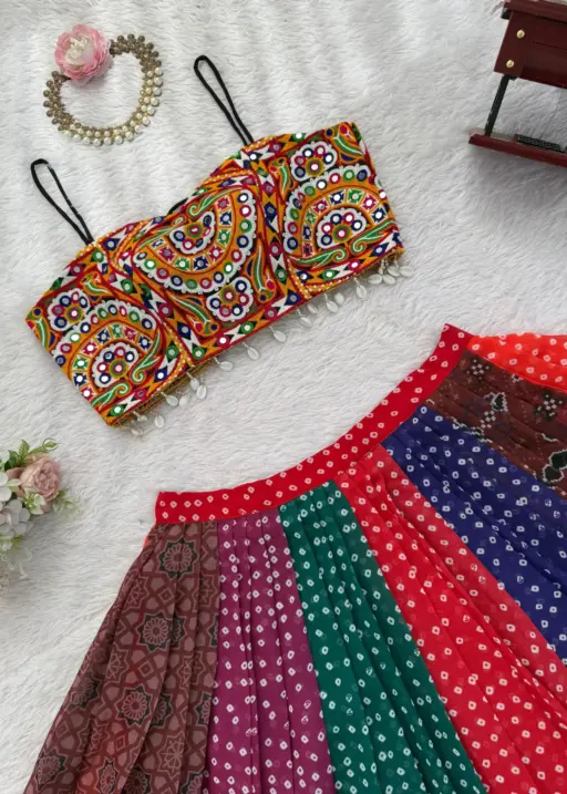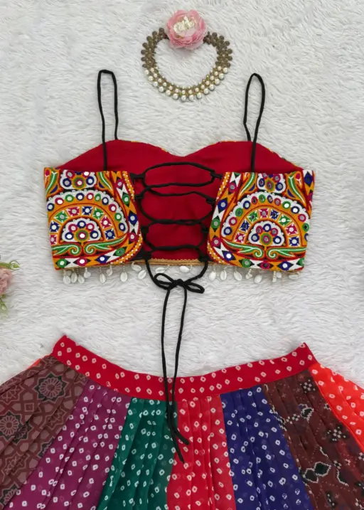 | Choli | Fully Stitched Fabric Faux Georgette Work Gamthi Work with Real Mirror (Front & Back Both Sides) Inner Micro Lining Size Fits up to 42 |