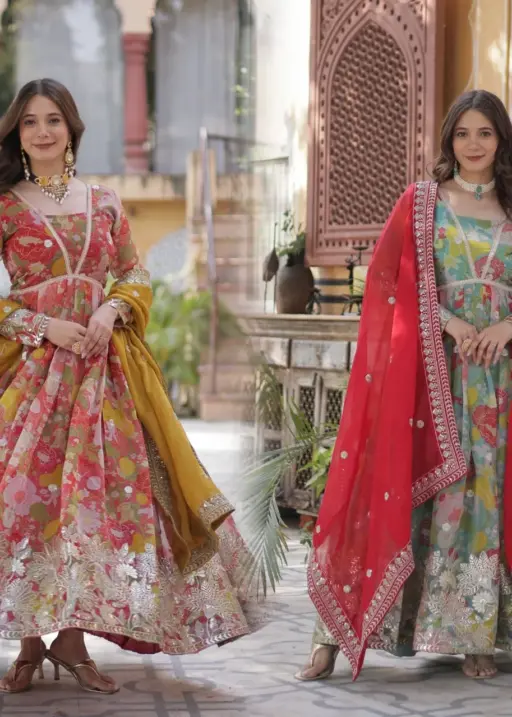 Catalog Name: Alia Cut Printed Gown with Dupatta for Girls
