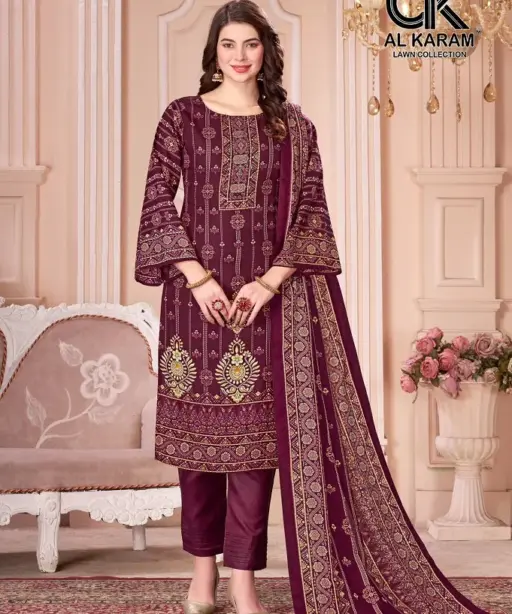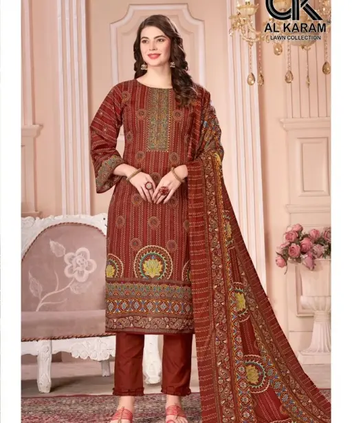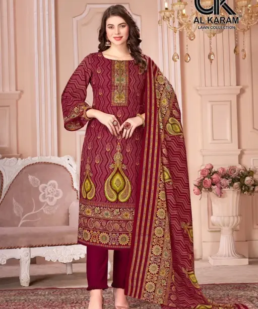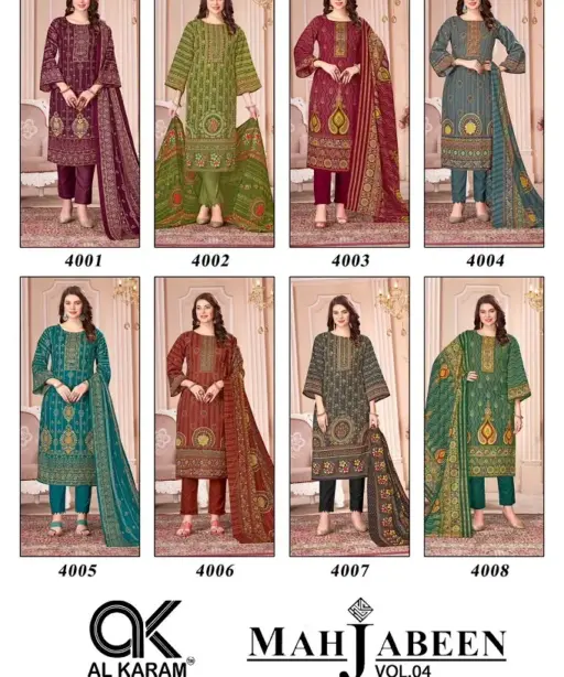Alkaram Mahjabeen Vol 4 Unstitched Pakistani Printed Cotton Salwar Suit Wholesaler