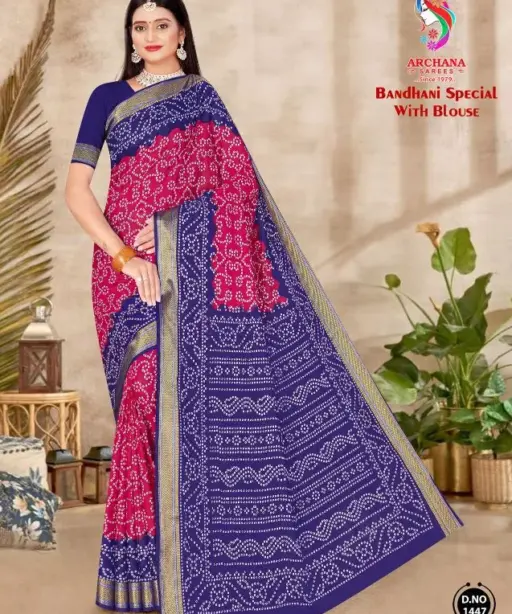 Saree Pure Cotton Bandhani Printed | 5.50 Mtrs | |
