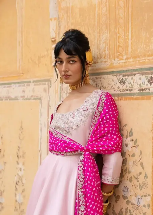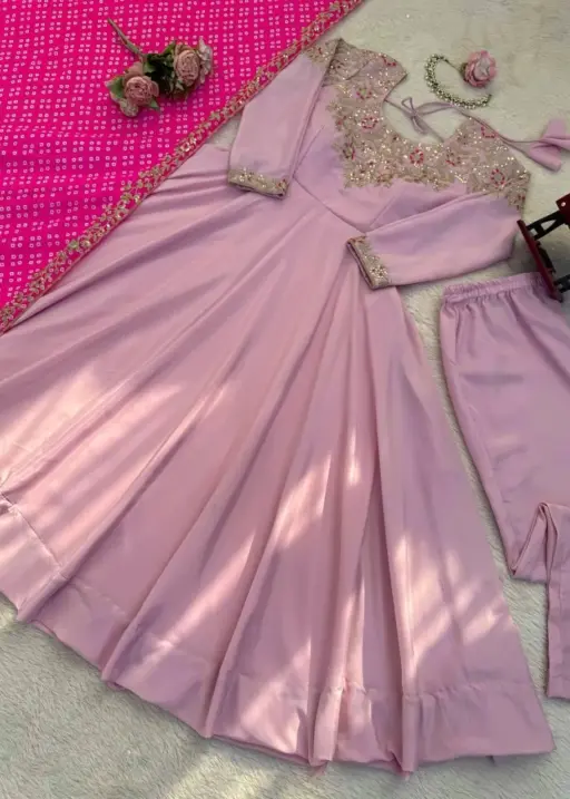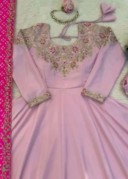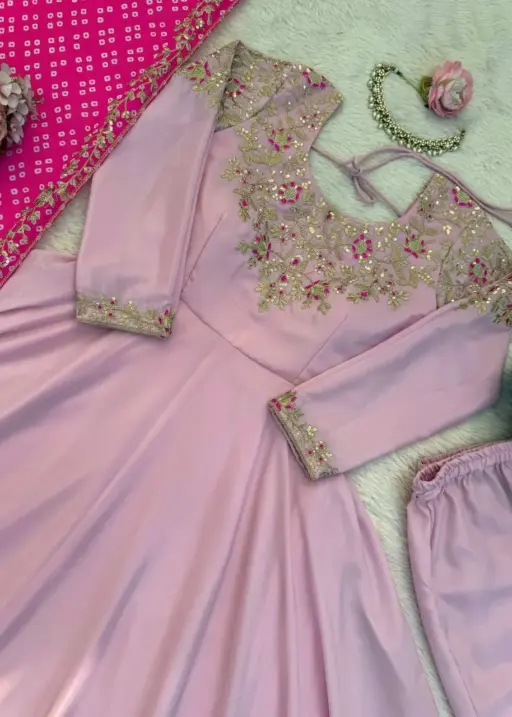 | Top | Natural Crepe Silk Thread with Sequence Work Front & Back Both Side neck work |