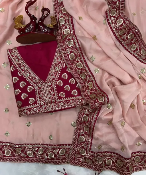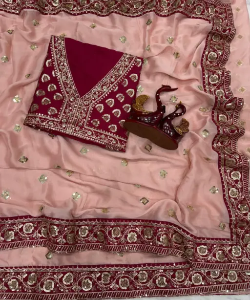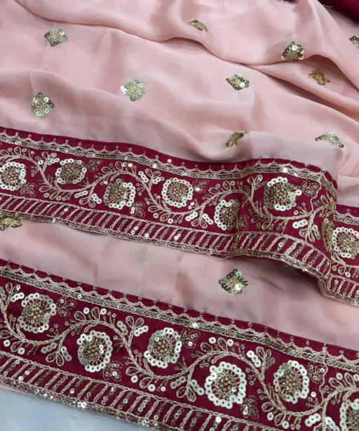 | Saree | Traditional pink color Designer beautiful party wear beautiful soft Rangoli silk with Beautiful Embroidery Red colour border multi, coding with double sequence embroidery work full Lace border design with beautiful pallu |