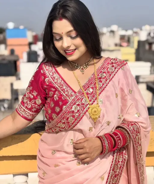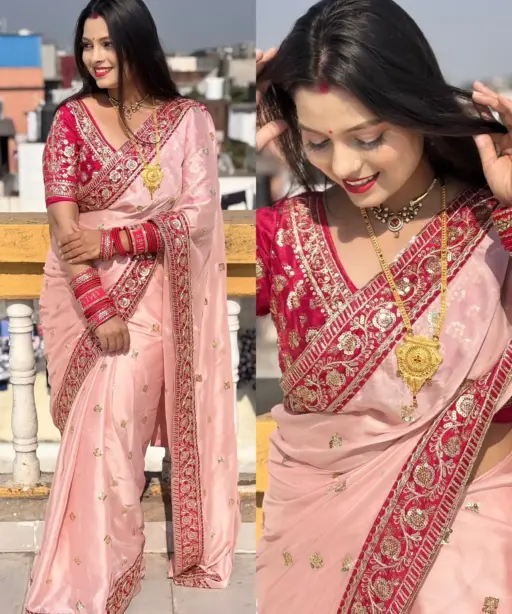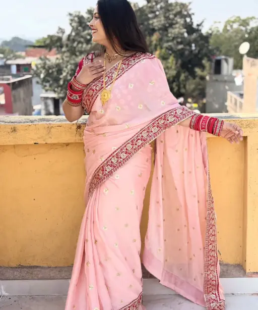 Baby Pink Border Saree for Pooja