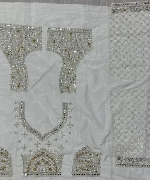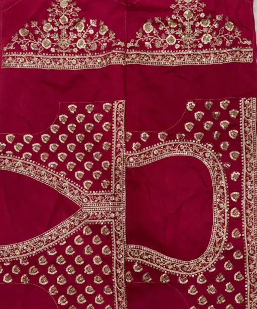 | Blouse | unstitched beautiful same red color embroidery multi and sequence embroidery work front , back and sleeves |