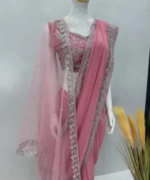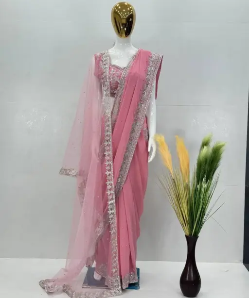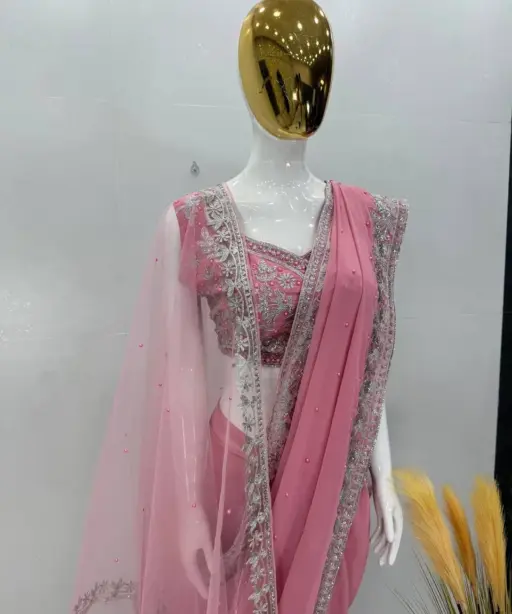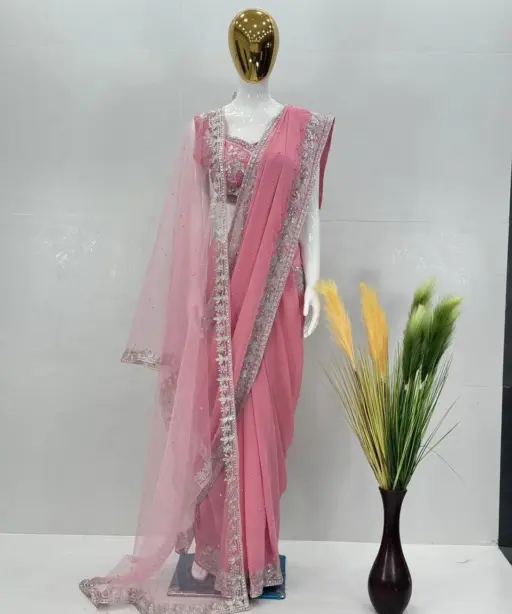 | Saree | HEAVY FUAX GEOREGTTE HEAVY CHINE SEQUENCE WORK WITH PERAL HAND WORK 5.5 MTR |