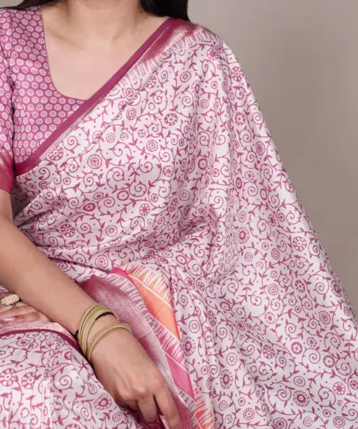 | Saree | Tasar Silk With Viscose Border Printed 5.5 meter |