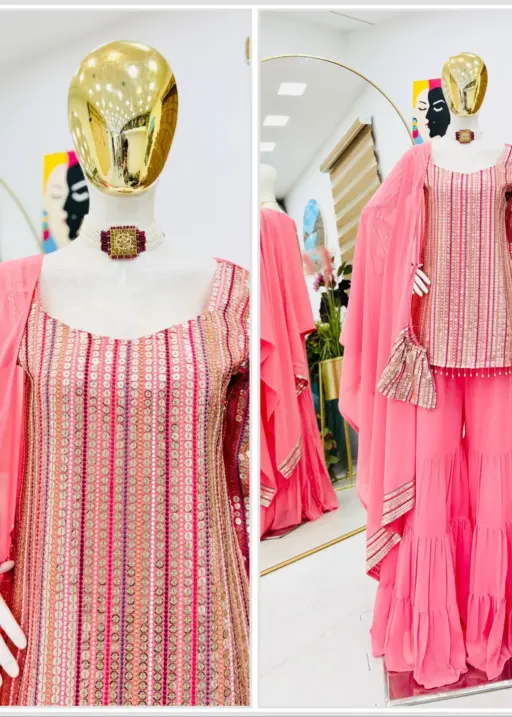 | Top | Heavy Fox Georgette 7+9 Sequence Embroidery LENGTH 32, SLEEVES 18 Inch |