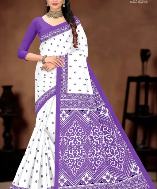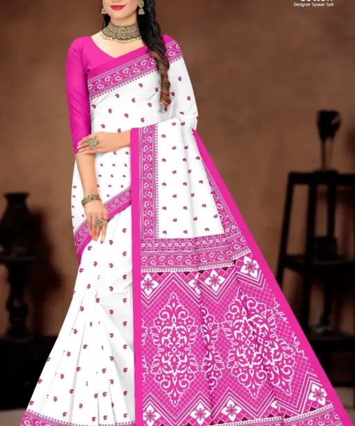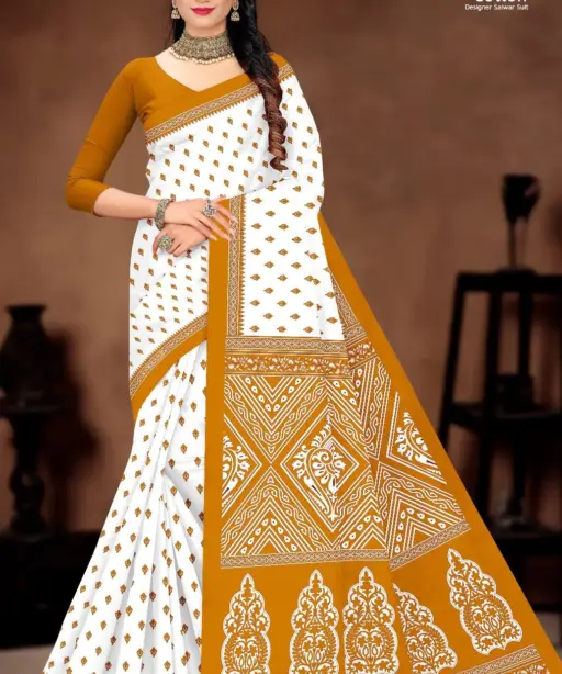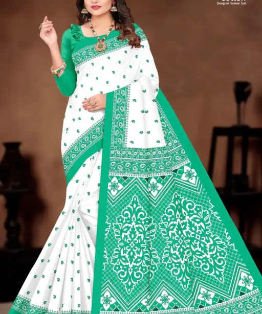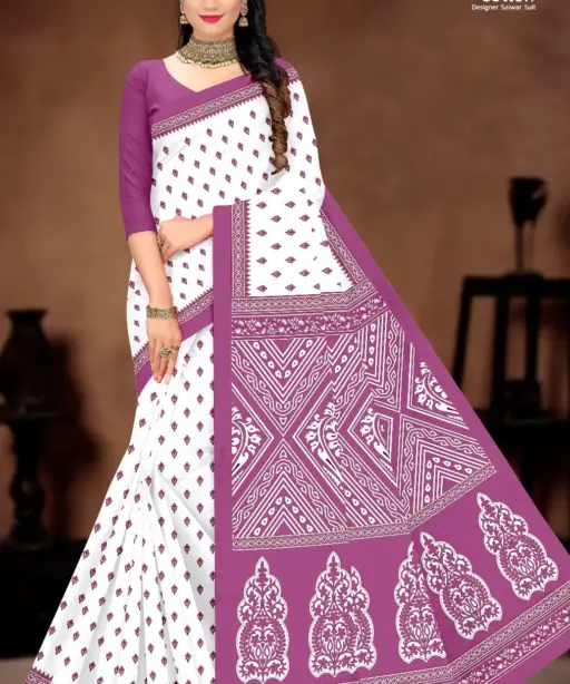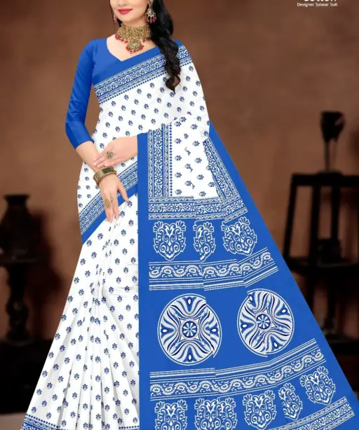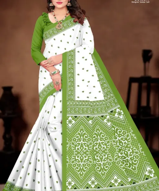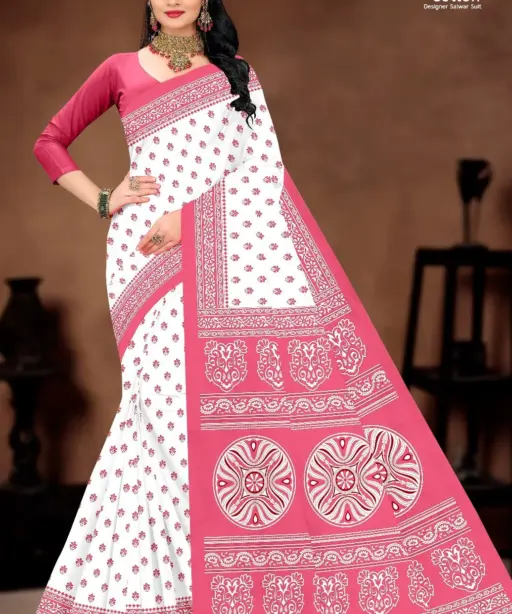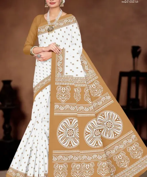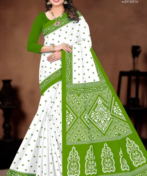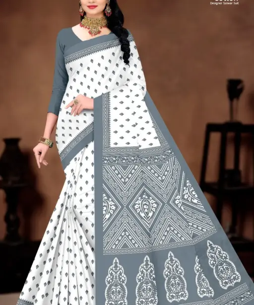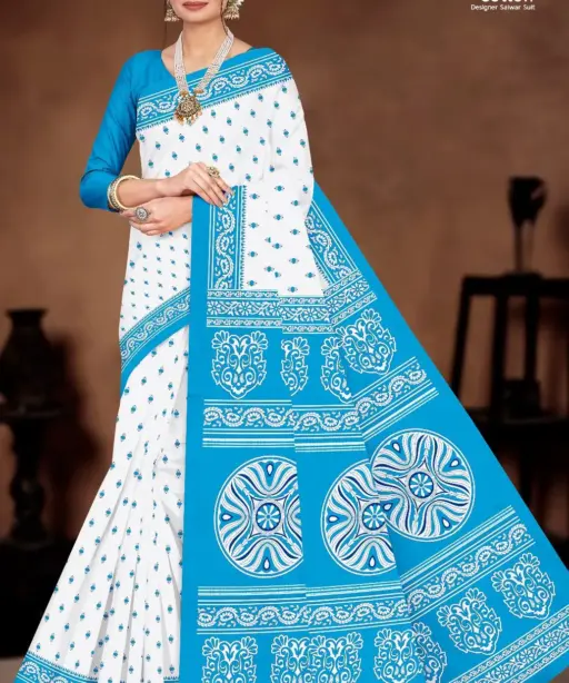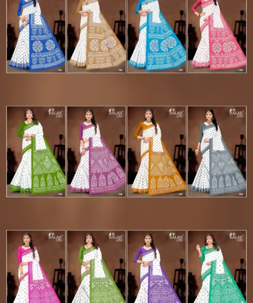 Balaji White Butti Low Range Cotton Printed Saree Wholesaler