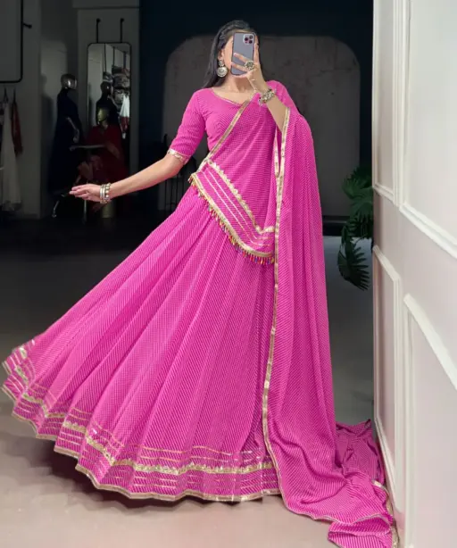 | Lehenga | Georgette with Printed Design & Lace Touch Up, Stitched with Canvas & Can Can, Drawstring with Heavy Tassels & Zip, Waist Supported up to 42, Length 41, Flair 7 Meter, Inner Micro Crepe |