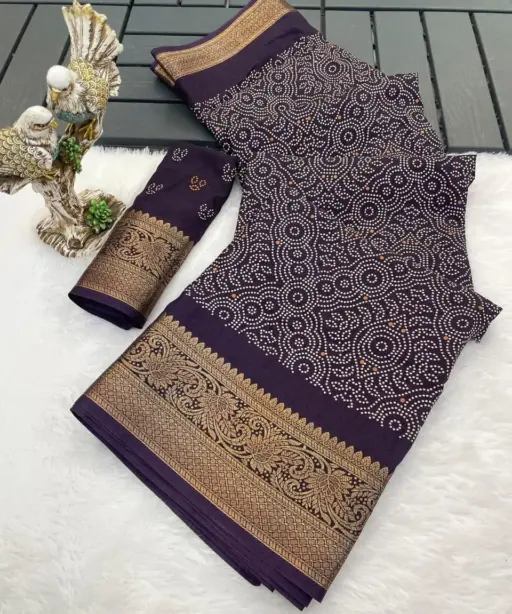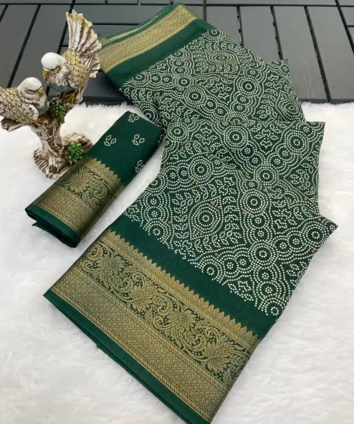 SareeSoft Dola Cotton with Bandhani Print, Zari Jacquard Kanjivaram Zari Border & Pallu (6.30 Mtr)