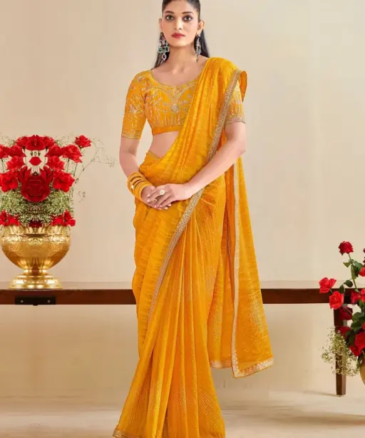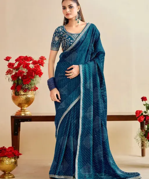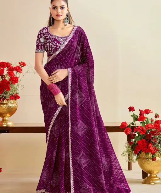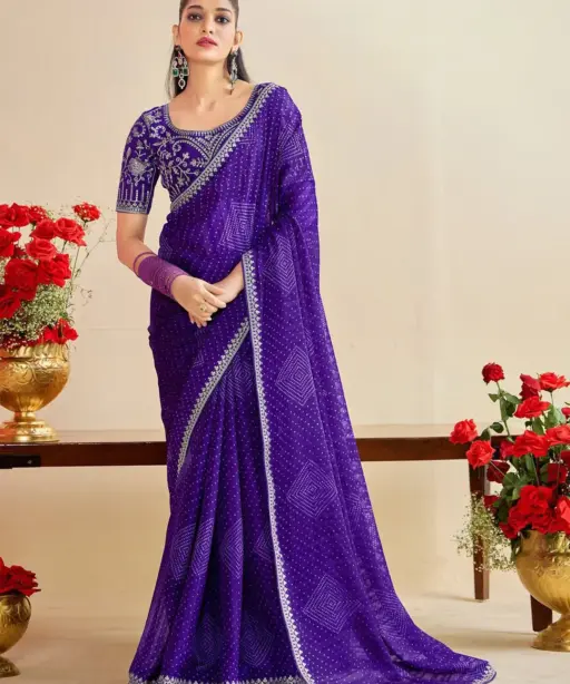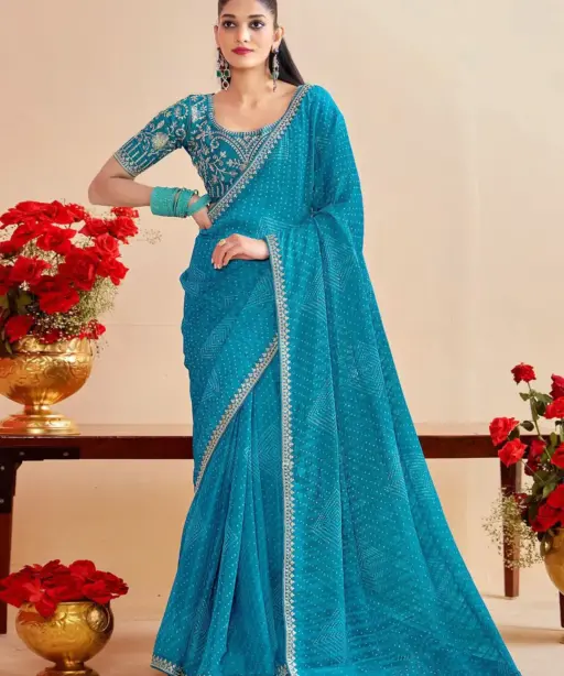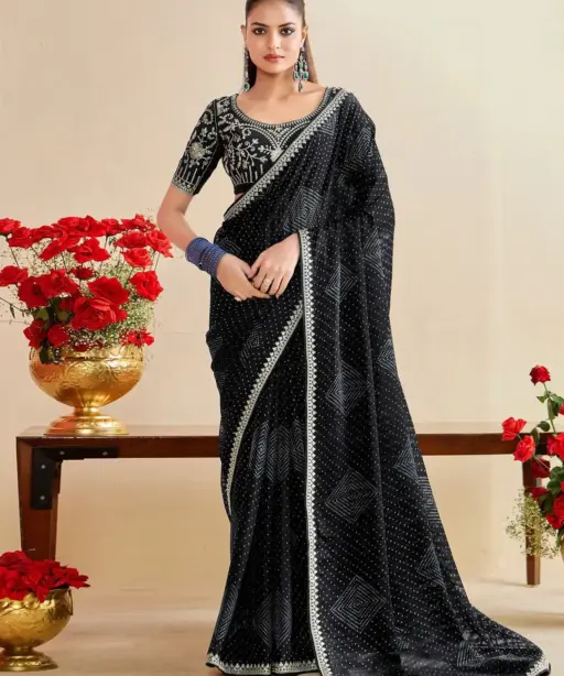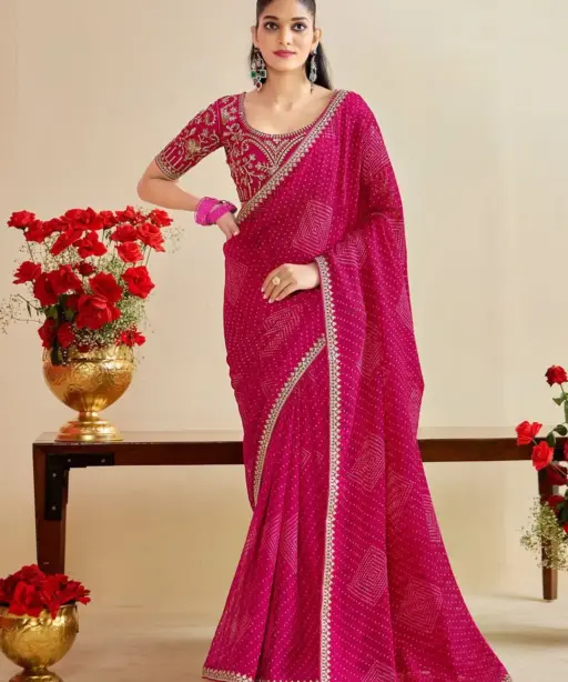 Catalog Name: Bandhani Saree with Embroidery Blouse