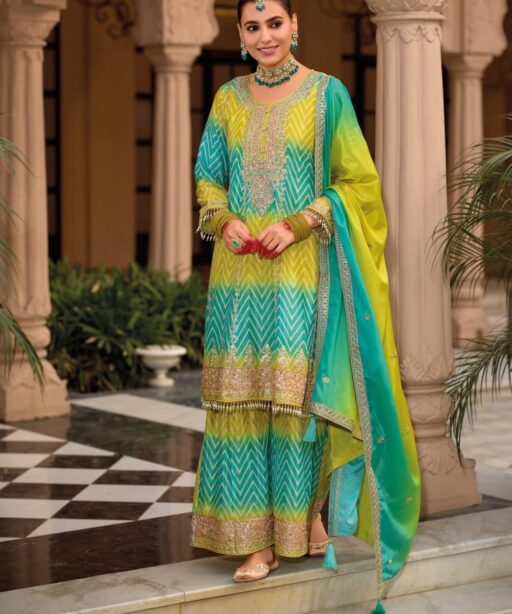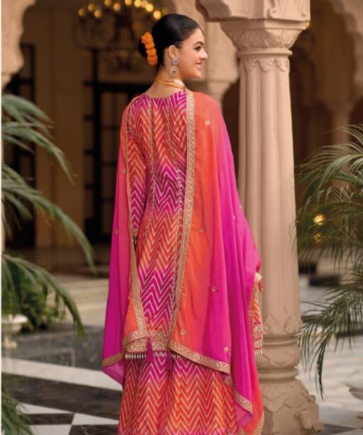 This Bandhni Printed Sharara Salwar Kameez is a must-have for women looking to add traditional elegance with a contemporary twist to their wardrobe. Perfect for weddings and festive wear, this outfit brings together the best of craftsmanship and modern design, making it a showstopper for any celebration.