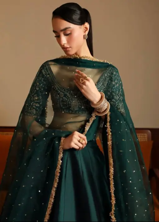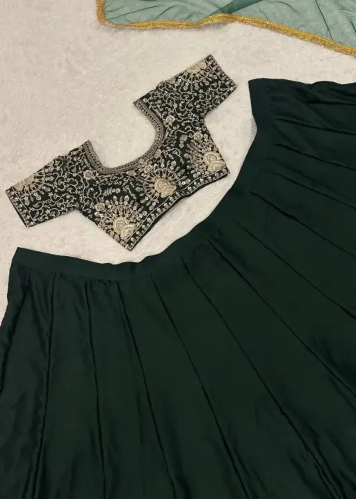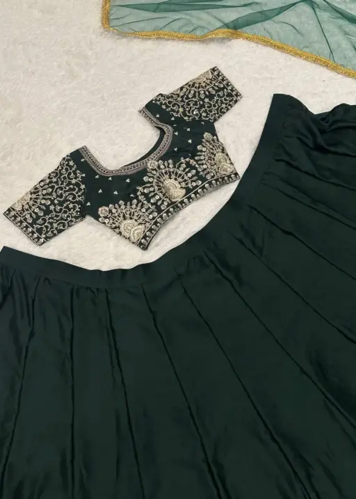 | Lehenga | Malai satin lehnga with 4.5-meter flair can can attach |