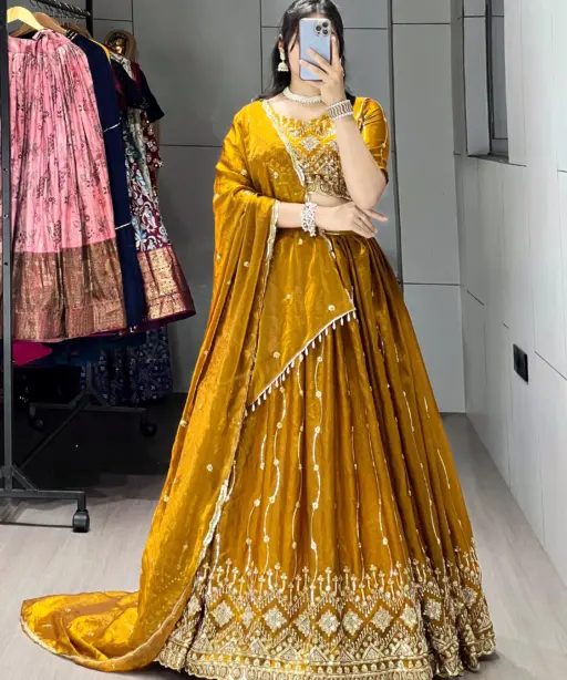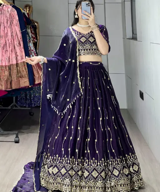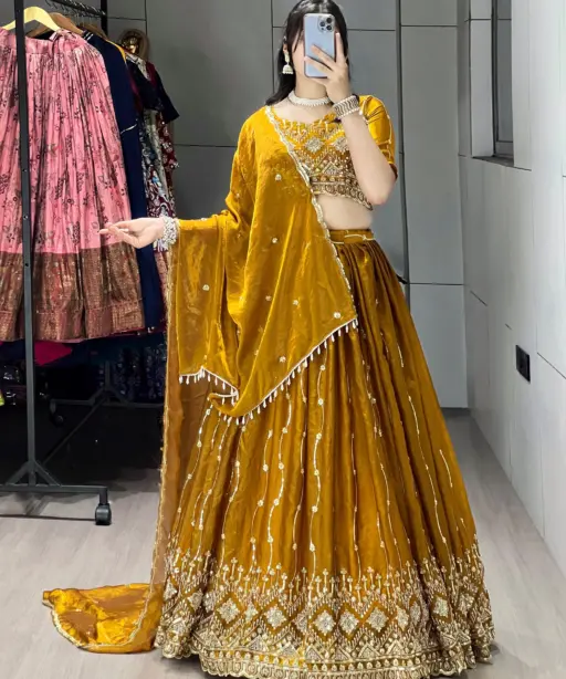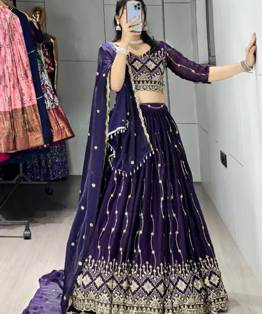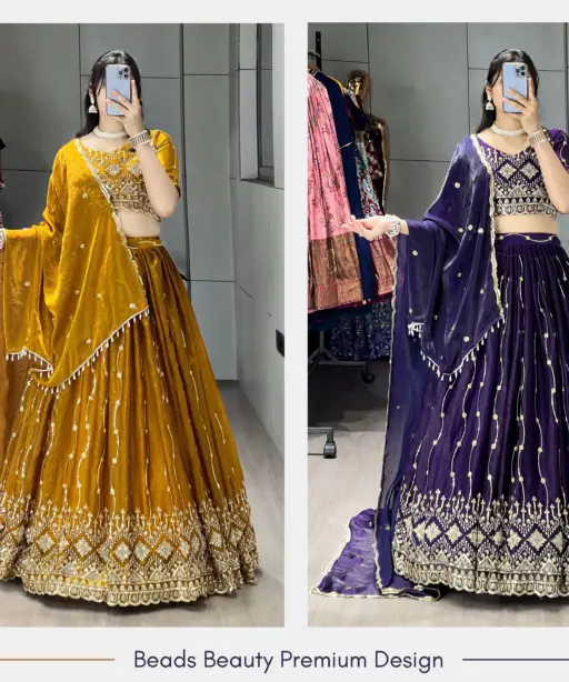 | Lehenga | Fendy Satin with Beads Embroidery Work and Sequence |