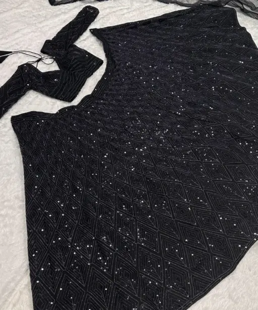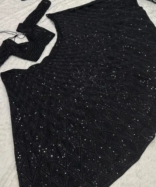| Lehenga | Georgette with sequins and dori work, 3.5-meter flair, cancan attached |