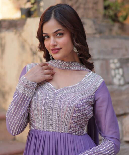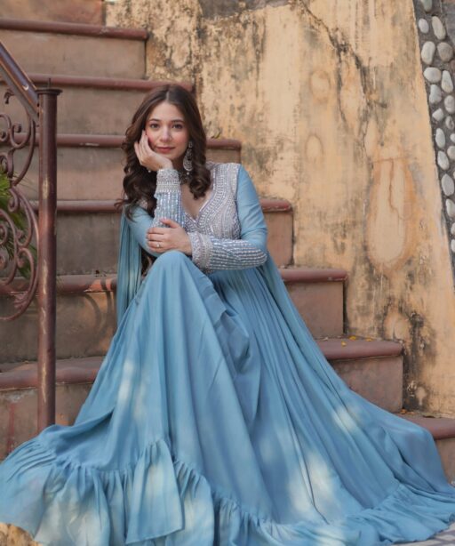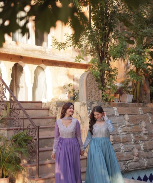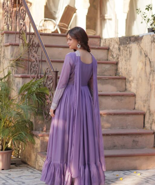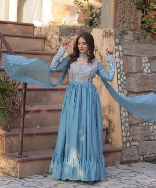 Beautiful Light Shade Anarkali Gown With Dupatta Ethnic Wear