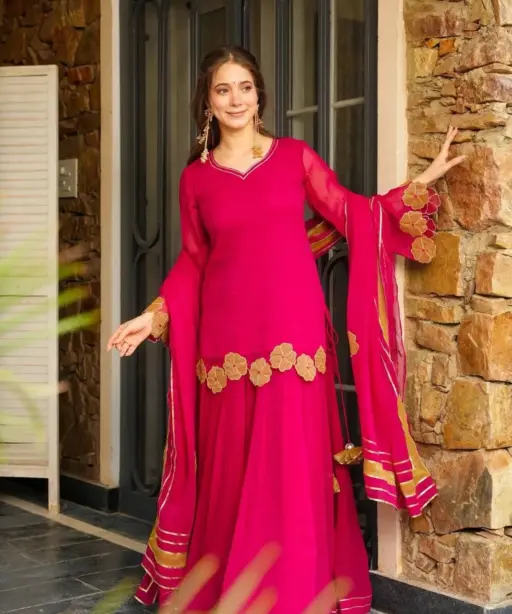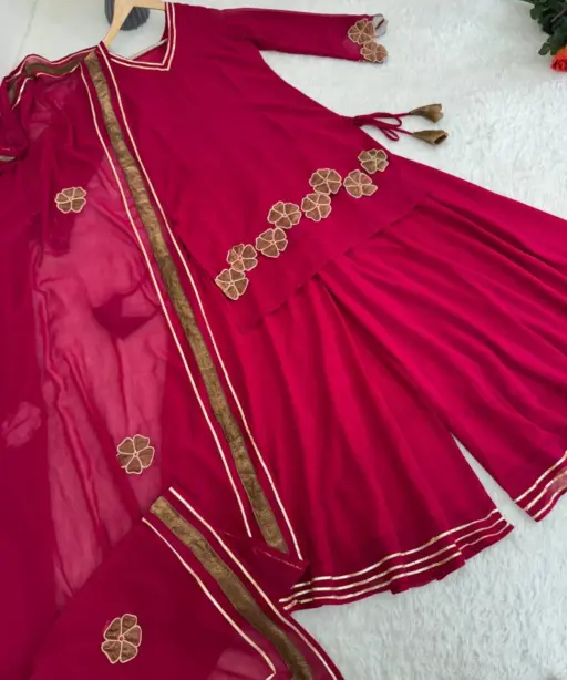 Bottom: Faux Georgette, Gotta patti Lace Boder And Fully Heavy Flair