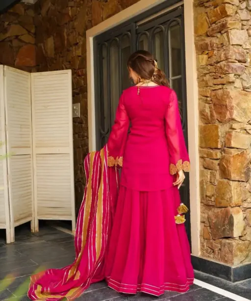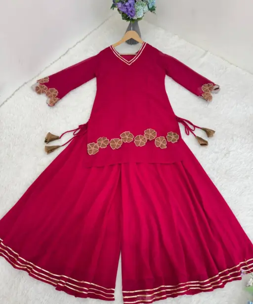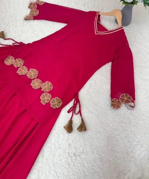 Top: Kurti Cutwork Faux Georgette Heavy Quality and Gotta Patti Work Fancy Broket Pach Butt Cut Work Length 32-33 In