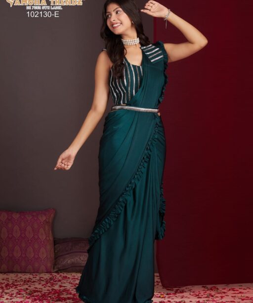 Experience effortless elegance with our Beautiful Ready To Wear Saree with Stitched Blouse for Party Wear, designed to make you the center of attention at any special occasion. This saree comes pre-stitched for your convenience, ensuring a hassle-free draping experience. Paired with a perfectly stitched blouse, it offers a stylish, tailored look that’s ideal for weddings, parties, and festive celebrations.