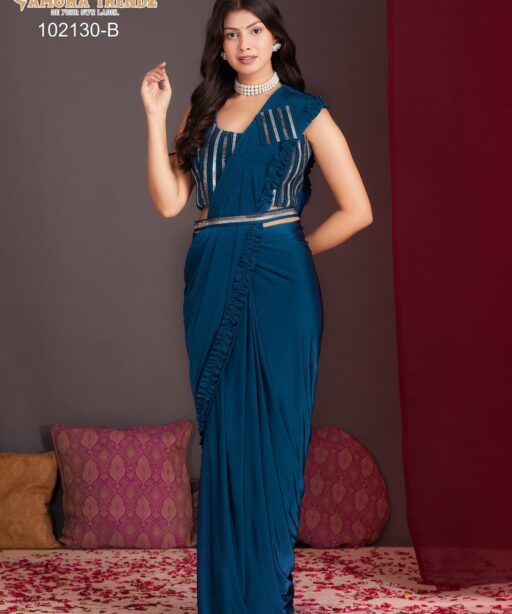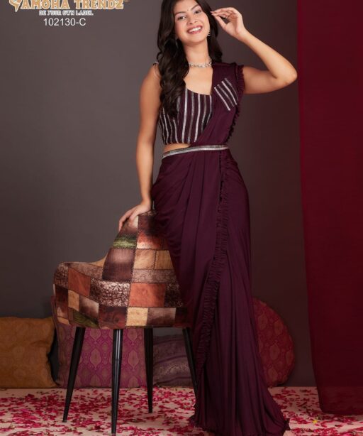 Our ready-to-wear saree combines rich fabrics, intricate detailing, and vibrant colors to deliver a stunning look. The stitched blouse for party wear ensures a comfortable and flattering fit, while the saree itself exudes sophistication and grace. Whether you’re attending a wedding, reception, or evening event, this saree guarantees you’ll look and feel your best.