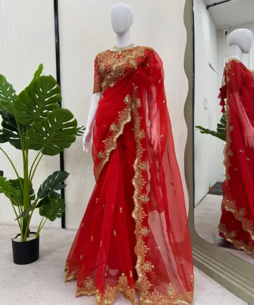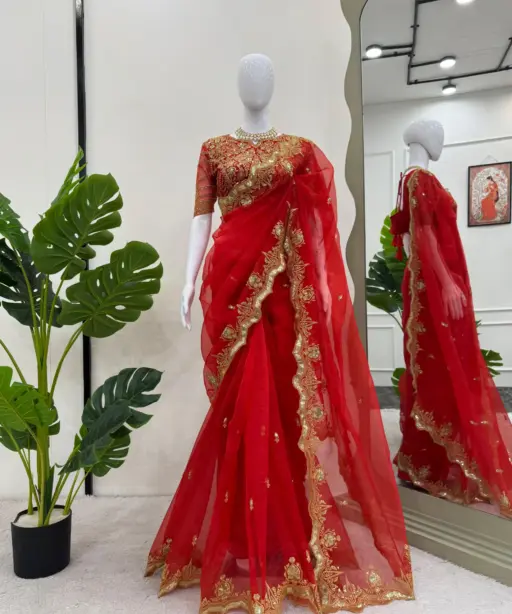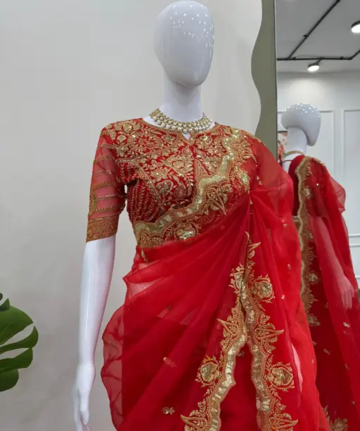 | Blouse Cut | 0.80 CM (Un-Stitched) Work Thread with Sequins |