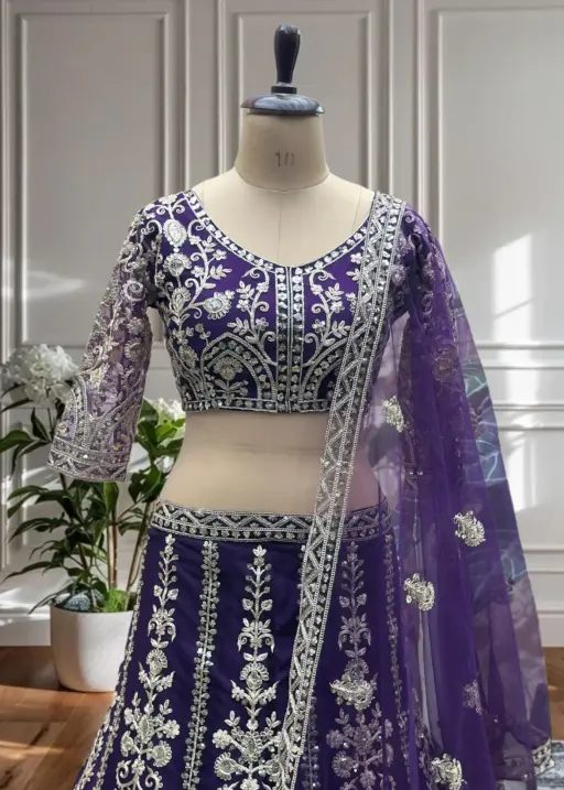 LehengaButterfly net (Sequins & codding embroidery work), Inner Micro cotton with cancan & canvas (Size: Lehenga Waist – 50″, Length – 42″, Flair – 3.5 Mtr, Dupatta – 2.10 Mtr)