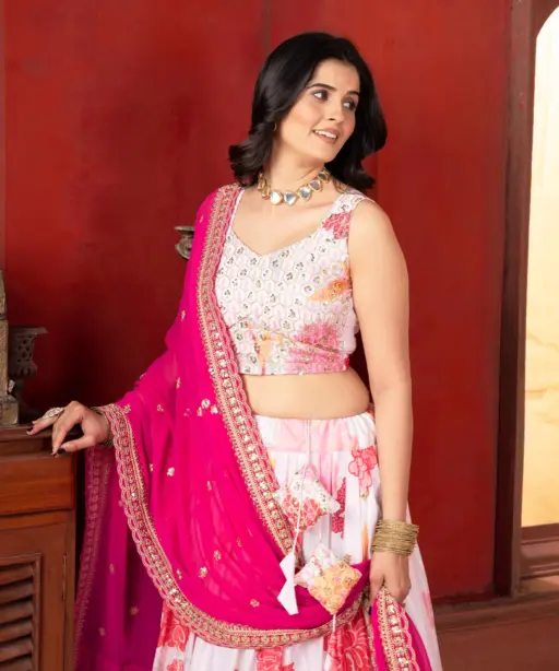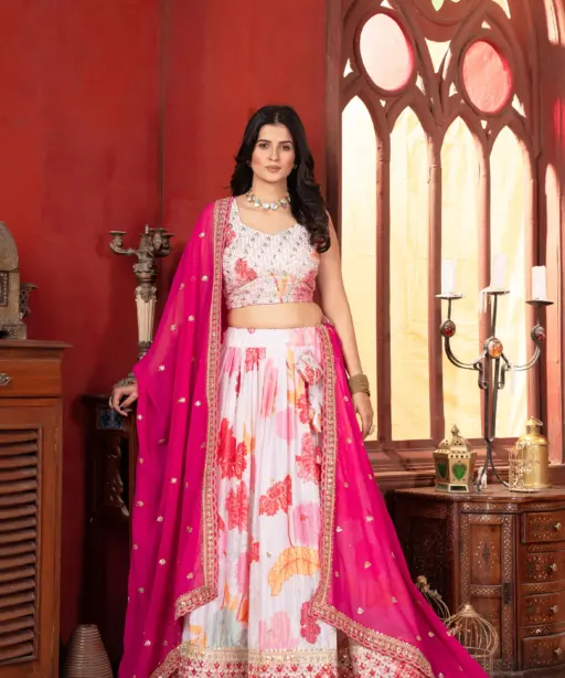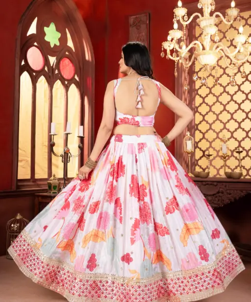 | Lehenga | Chinon Silk Digital Print with Sequins Codding Embroidery Work |