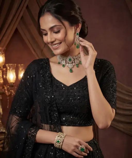 | Lehenga | Net Handwork motif Sequins embroidered Thread work Zari embroidered |
