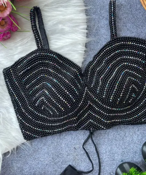 | Blouse | Beautiful Traditional Blouse Heavy Stitching Heavy Pearl Blouse Padded With Beautiful Work BACK open Style Size 38 Ready |