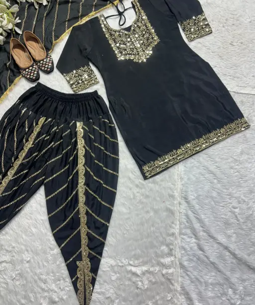 | Bottom | Heavy Pure Chinon with Embroidery 5mm Sequence Work, Fully Stitched, Length: 41-42 inches |