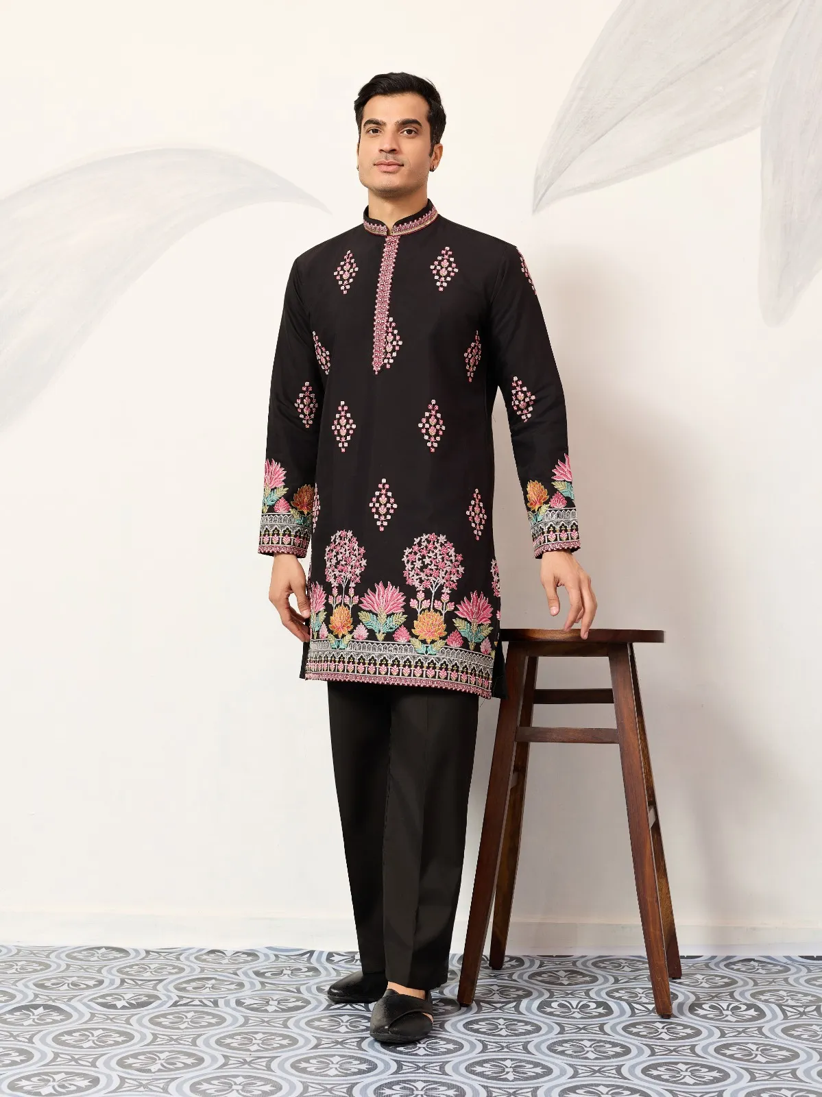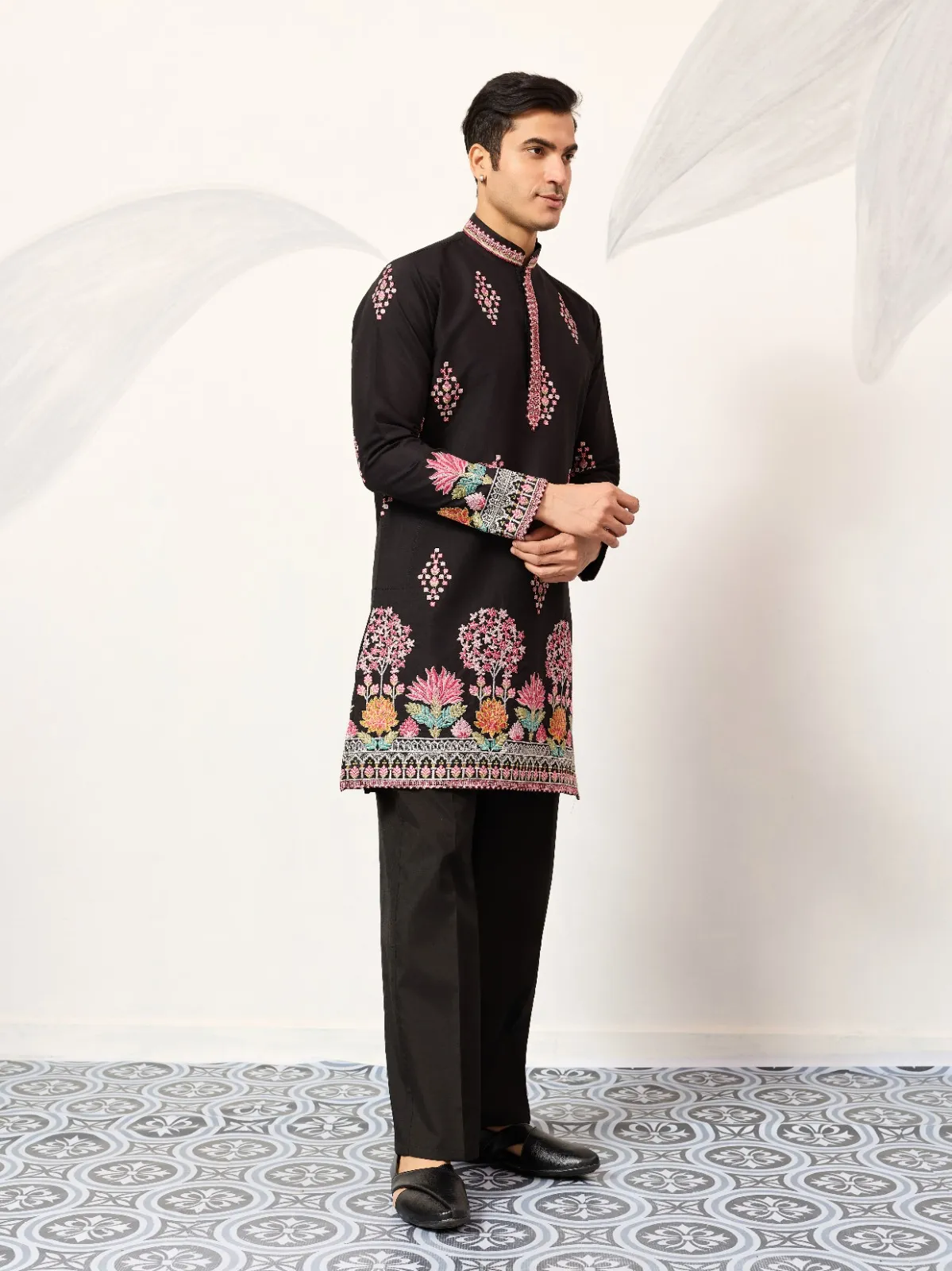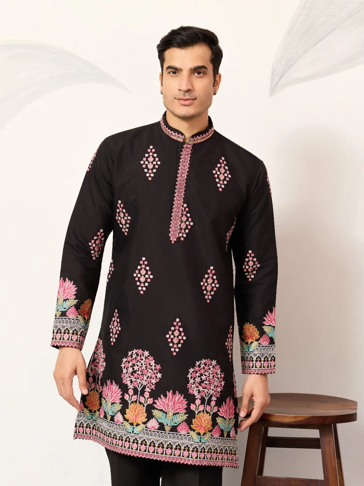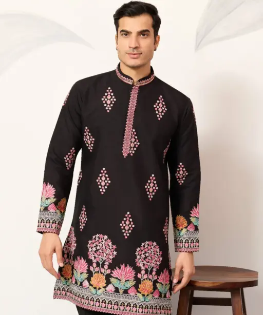 Black Embroidery Men Kurta