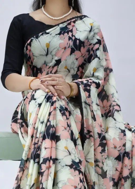 | Saree | Weightless All Over Floral Printed with Cotton Lace Border 5.5 Mtr |