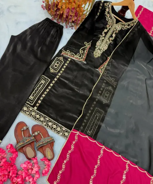 | Top | Pur jc Silk with Embroidery 5 mm Sequence Work with Fancy Sleeves 44-45 Inch Length |