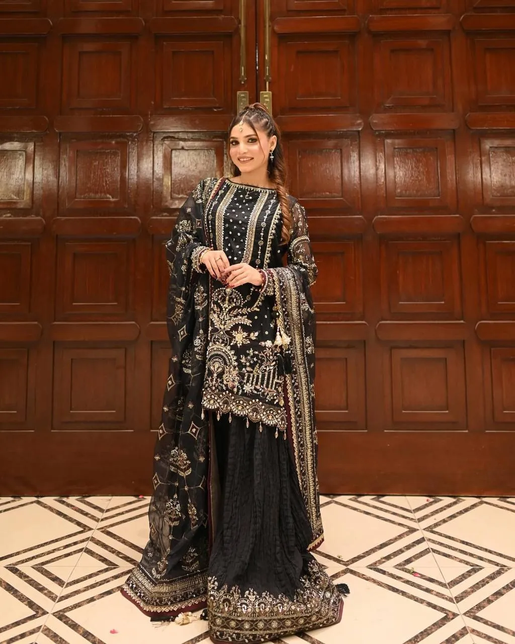 Black Pakistani Readymade Sharara Salwar Set