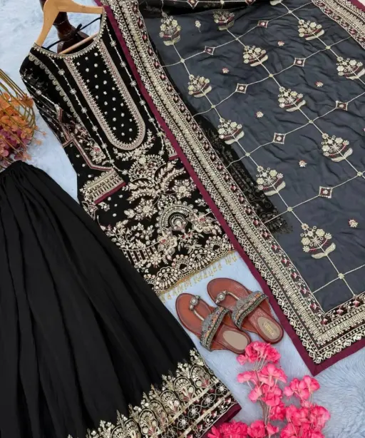 | Bottom | Heavy Khajuri Crush Faux Georgette with Heavy Embroidery 5 mm Sequence Work with Elastic 40-41 Inc Length |