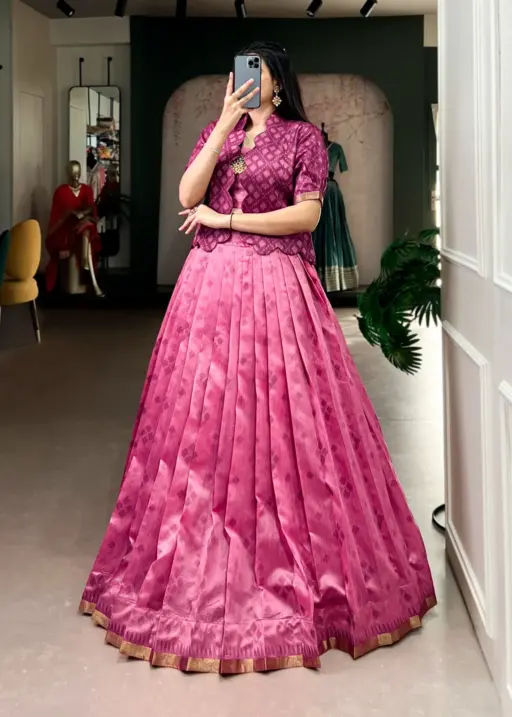 LehengaJacquard Silk Patola Print with Zari Weaving Work Length: 41, Flair: 4.50 Meter
