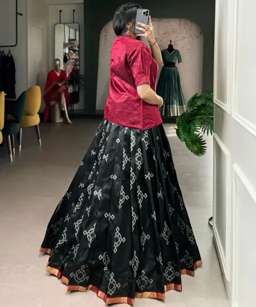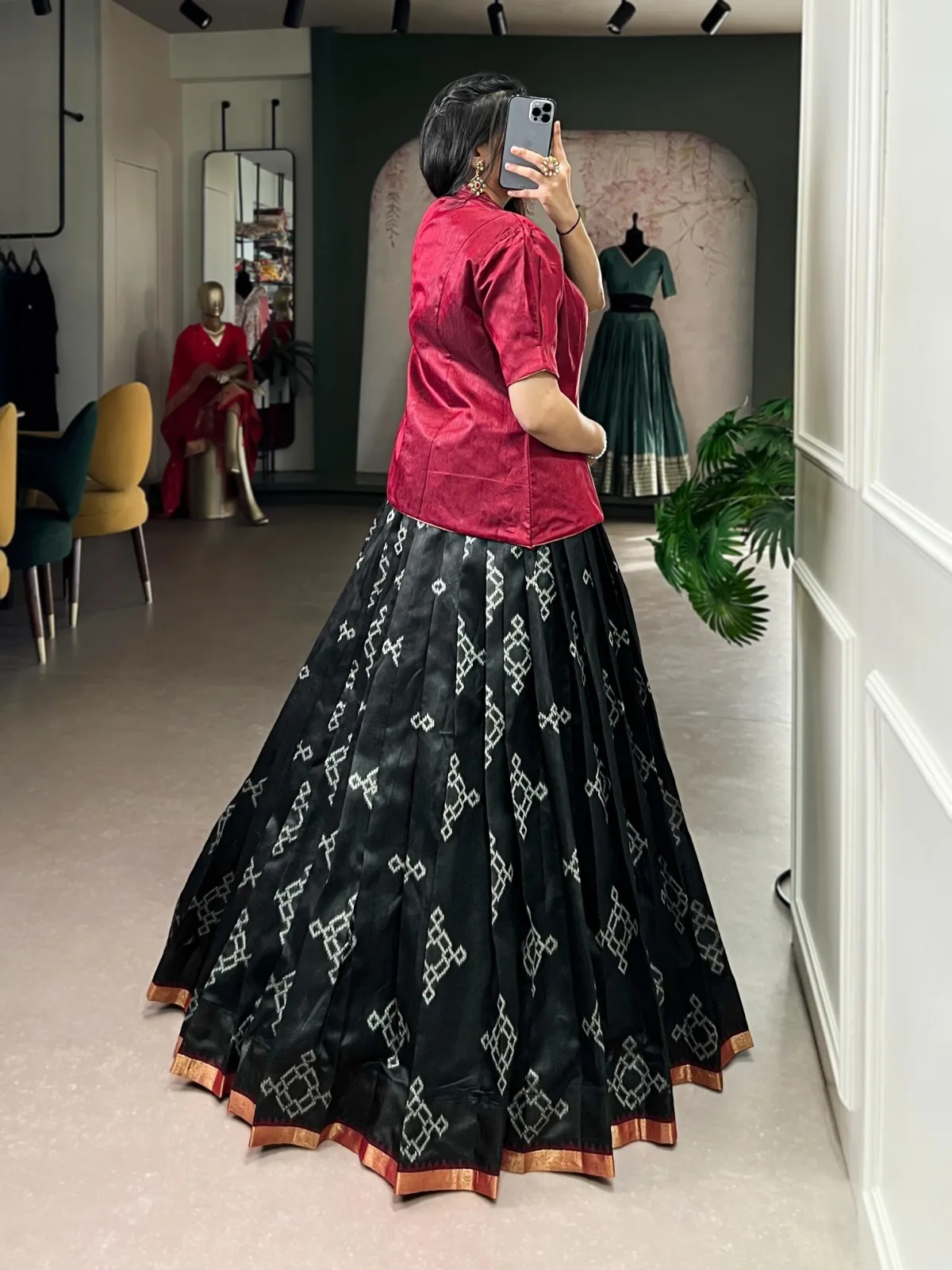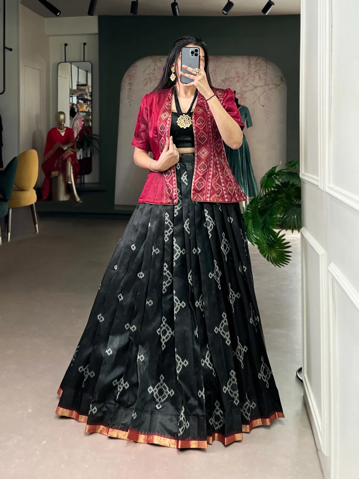 Black Patola Printed Readymade Lehenga with Koti Blouse