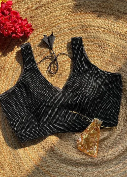 Black Pearl Moti Sleeveless Blouse for Wedding